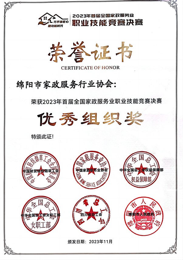 綿陽市家政服務(wù)行業(yè)協(xié)會(huì)一直 致 力 于 推 動(dòng) 行 業(yè) 的 發(fā) 展 和 進(jìn) 步,他們?cè)诒敬伪荣愔姓故玖?卓 越 的 組 織 能 力和協(xié) 調(diào) 能 力,為比賽的成功做出了重要的貢獻(xiàn)。他們的努力和貢獻(xiàn)得到了廣泛的認(rèn)可和贊譽(yù)。